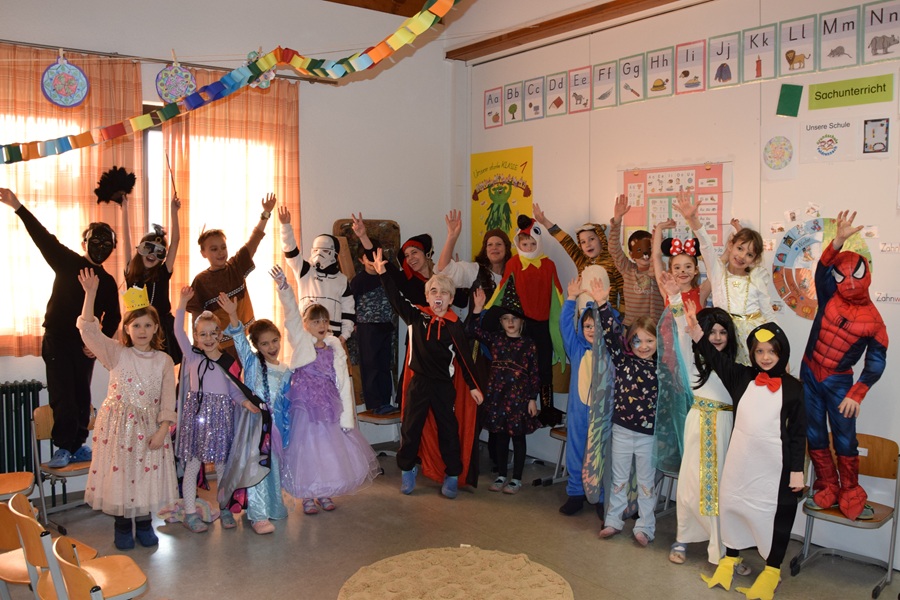 Am letzten Schultag vor den Faschingsferien wurde allen schon beim Betreten der Eingangshalle klar - heute wird es närrisch bunt! Kinder und Erwachsene hatten sich so toll kostümiert, dass man sich gegenseitig kaum wiedererkannte. Nach und nach gabem sich Kinder und Lehrerinnen natürlich wieder zu erkennen, so dass der verrückte Tag in allen Klassen mehr oder weniger geordnet beginnen konnte.