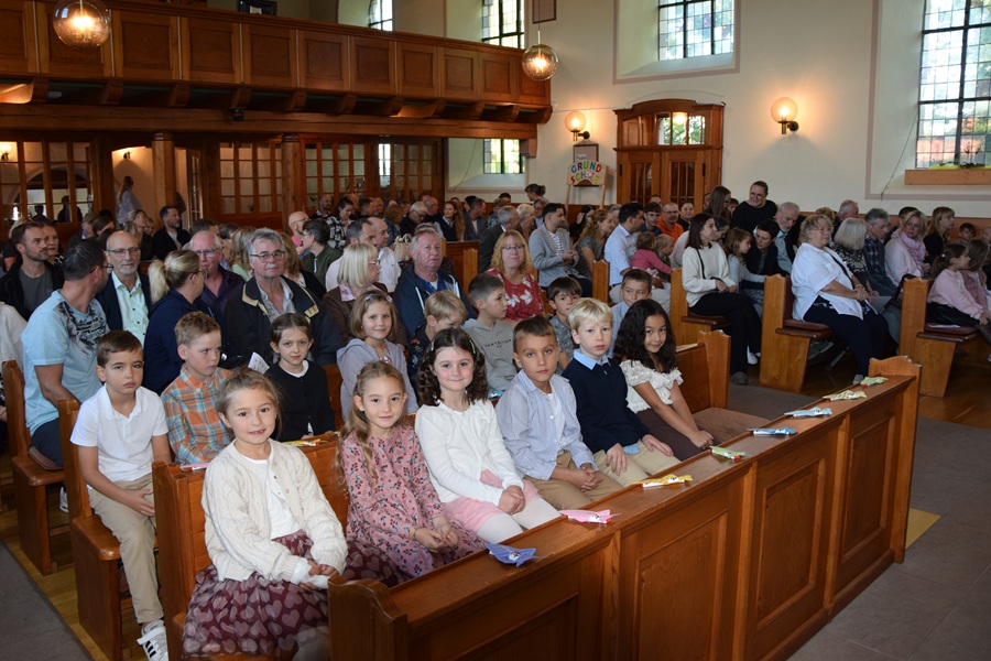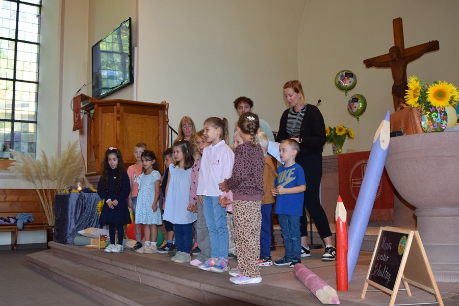 Sehr aufgeregt waren die Schulanfägerinnen und Schulanfänger an ihrem Einschulungstag, der mit einem schönen Einschulungsgottesdienst in der Stephanskirche Feldrennach begann, wo Pfarrer Matthias Gerlach unterstützt von seiner Frau am Keyboard den Kindern Gottes Segen für ihre nun beginnende Schulzeit gab.