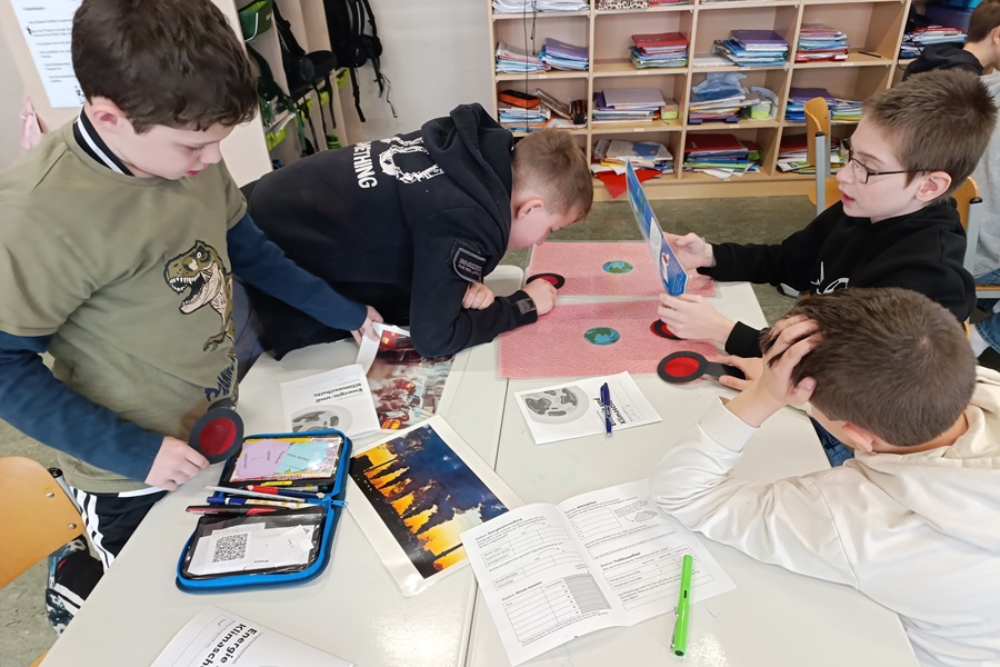 Am 10. bzw. 11.03. stattete uns Frau Klauder einen Besuch ab. Wir glänzten mit einem breiten Vorwissen über erneuerbare und fossile Energien. Sie erklärte uns außerdem, dass unsere Erde umhüllt von Gasen, wie Kohlenstoffdioxid, Sauerstoff und Stickstoff, ist. Mithilfe eines Mitmachheftchens durchliefen wir verschiedene Stationen: Wir durften an Geräten den Strom messen, erfuhren etwas über unsere Atmosphäre und die Folgen des Klimawandels und lernten den Treibhauseffekt kennen. Außerdem erweiterten wir unser Wissen über Energieumwandlung (z.B. Bewegungsenergie in elektrische Energie).
